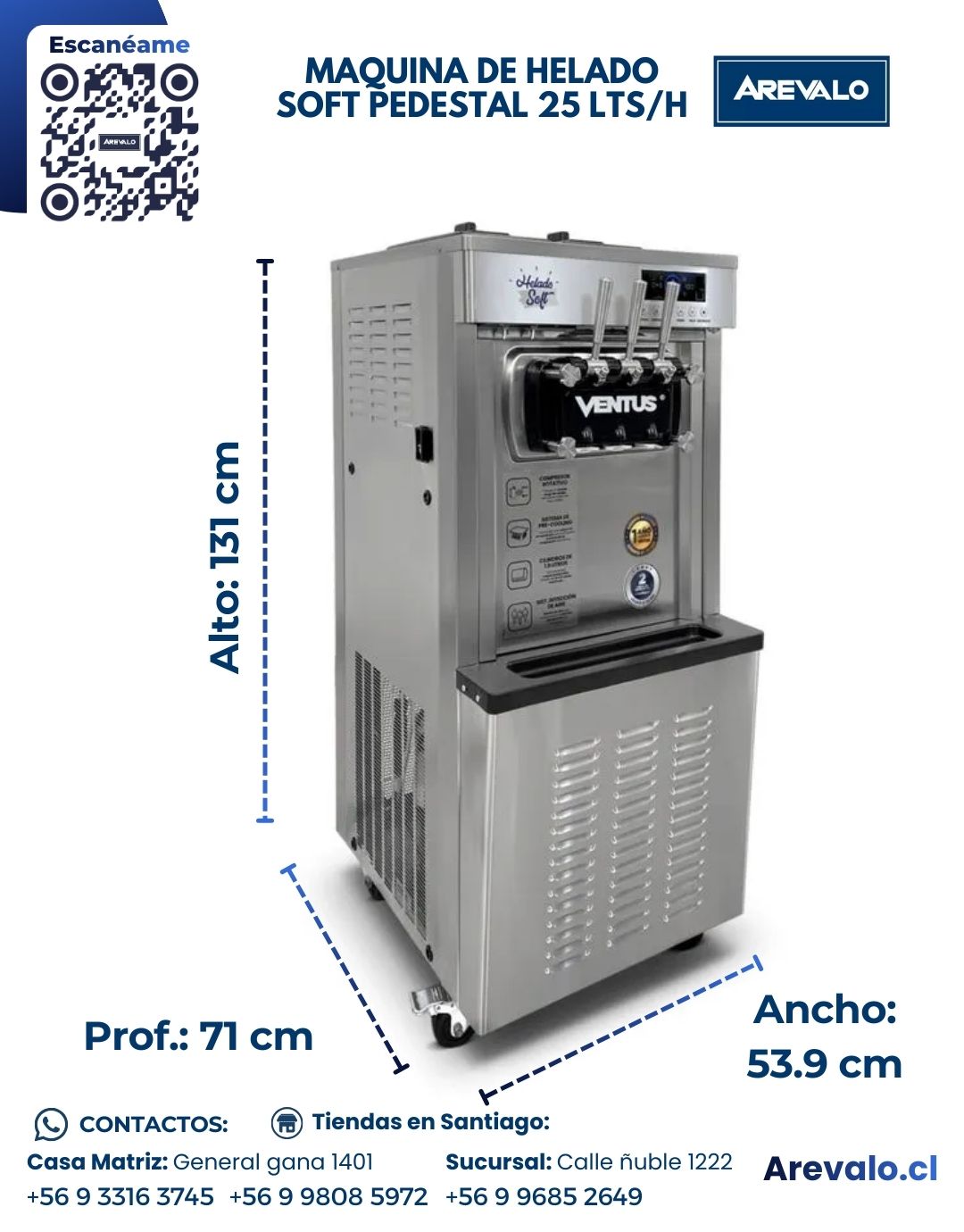 La Máquina de Helado Soft Pedestal VSP-25 FLEX está pensada para negocios que requieren una producción constante y confiable de helado soft. Su diseño en formato pedestal permite un funcionamiento estable durante largas jornadas, mientras que su capacidad de hasta 25 litros por hora la convierte en una excelente opción para locales con alta demanda. Gracias a su sistema de refrigeración y control preciso, entrega helados de textura suave y homogénea, manteniendo la calidad del producto final. Es una solución profesional para heladerías, restaurantes, cafeterías y centros de entretención que buscan eficiencia y rendimiento.