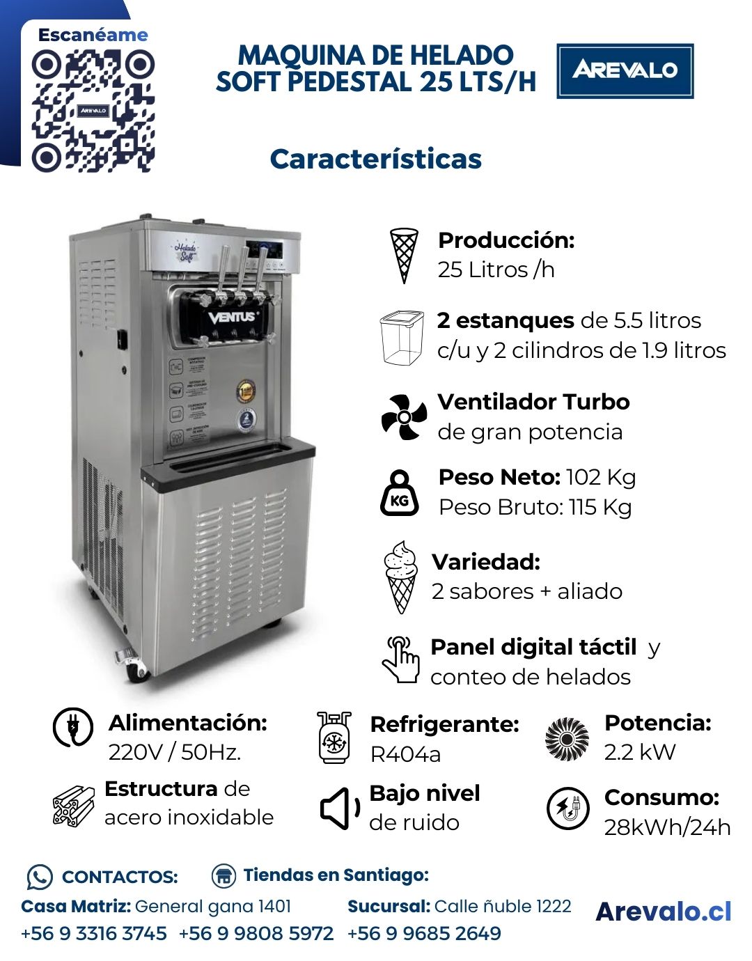 🍦 Producción hasta 25 litros por hora – Ideal para alto flujo de ventas.
