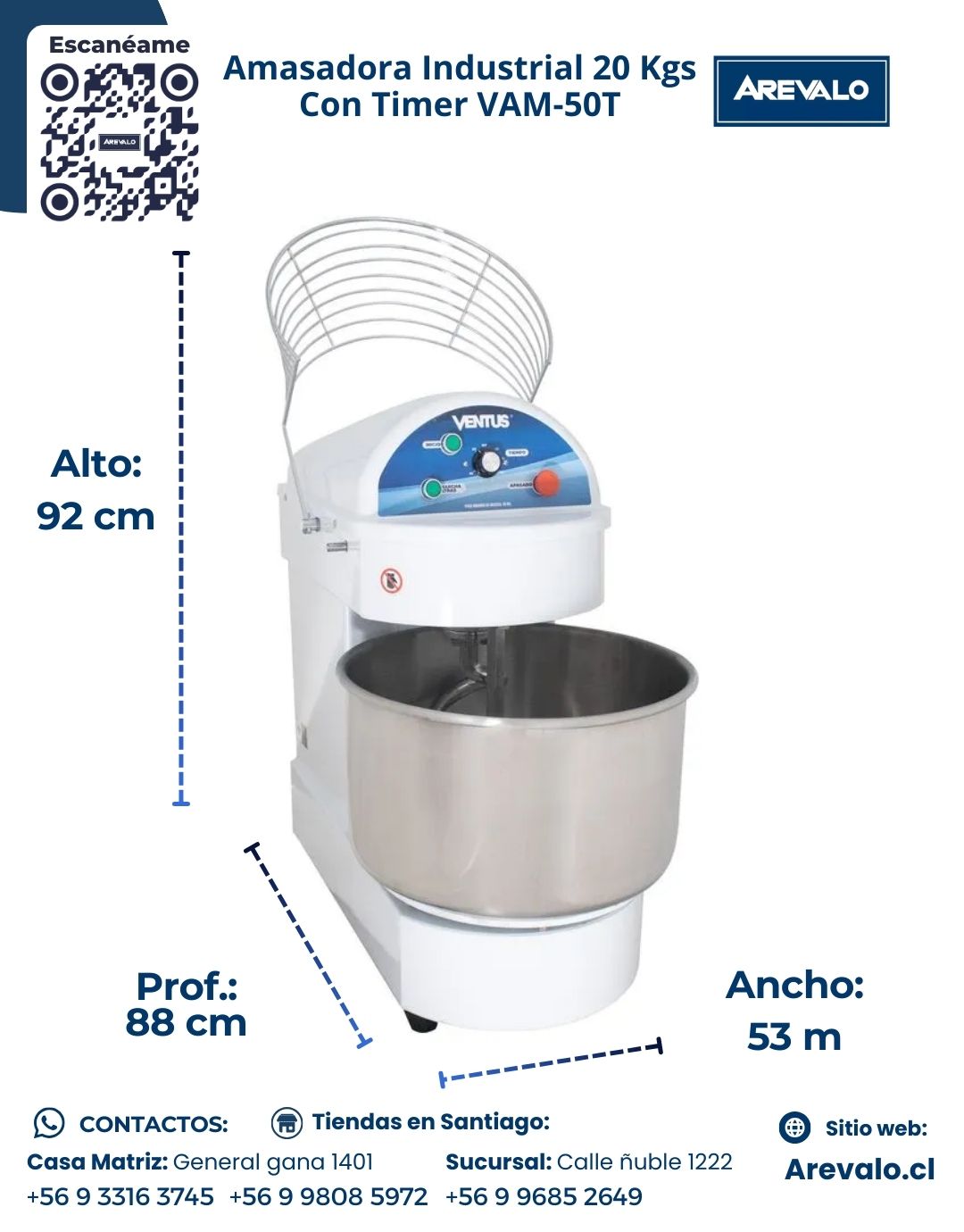 La Amasadora Industrial VAM-50T Ventus es una herramienta esencial para panaderías, pizzerías y negocios gastronómicos que necesitan trabajar con grandes volúmenes de masa. Su capacidad de hasta 20 kg permite preparar mezclas de manera eficiente, manteniendo una textura uniforme y óptima para la elaboración de panes, masas y productos de repostería.