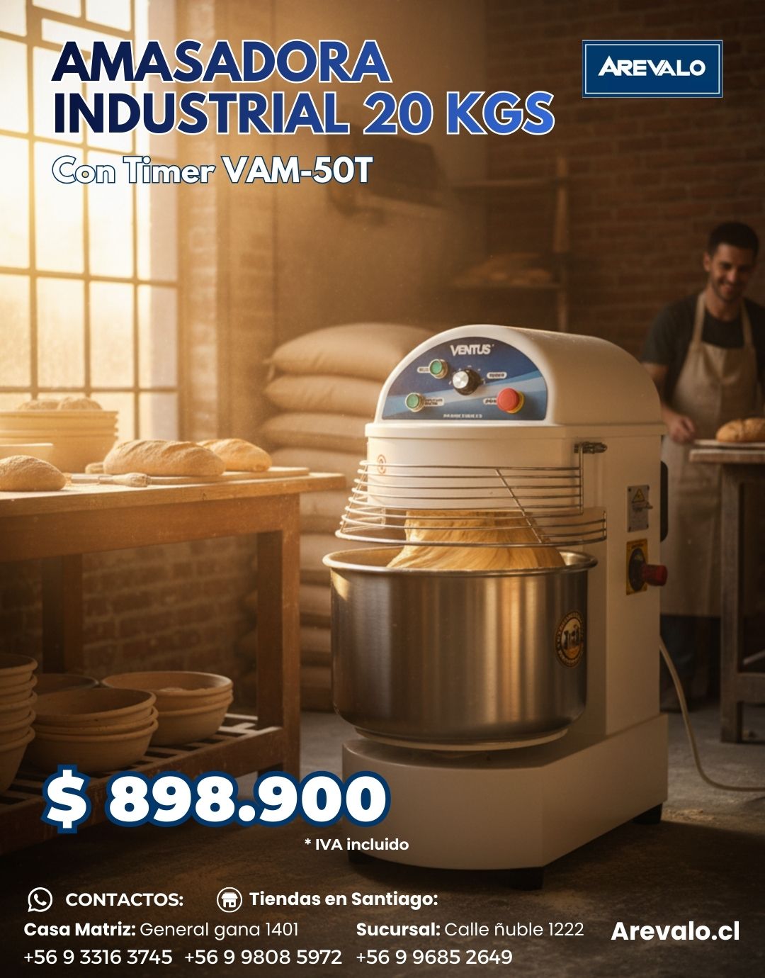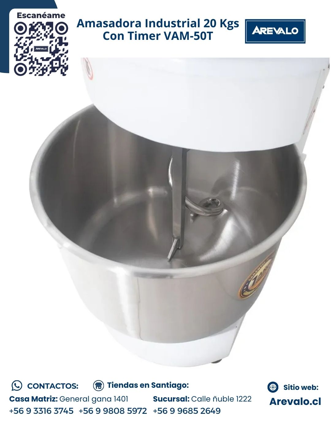 Capacidad de amasado 20 kg – Ideal para producción de panadería