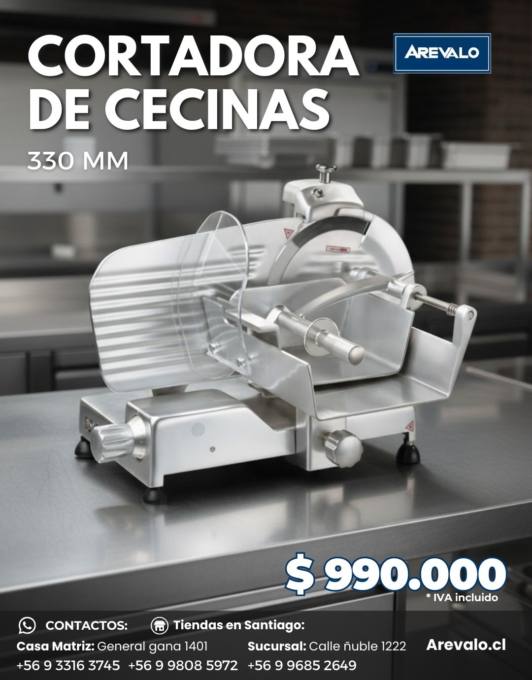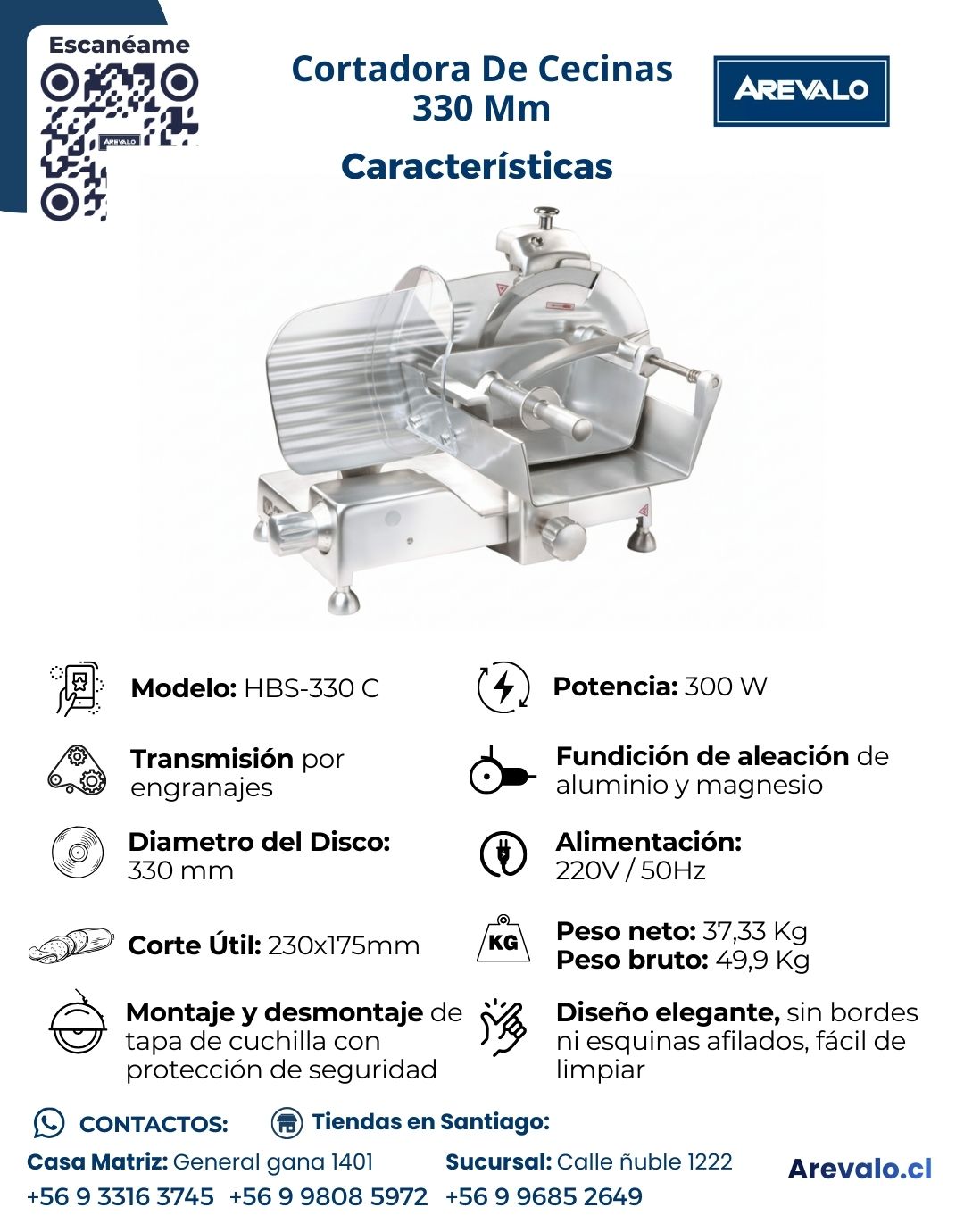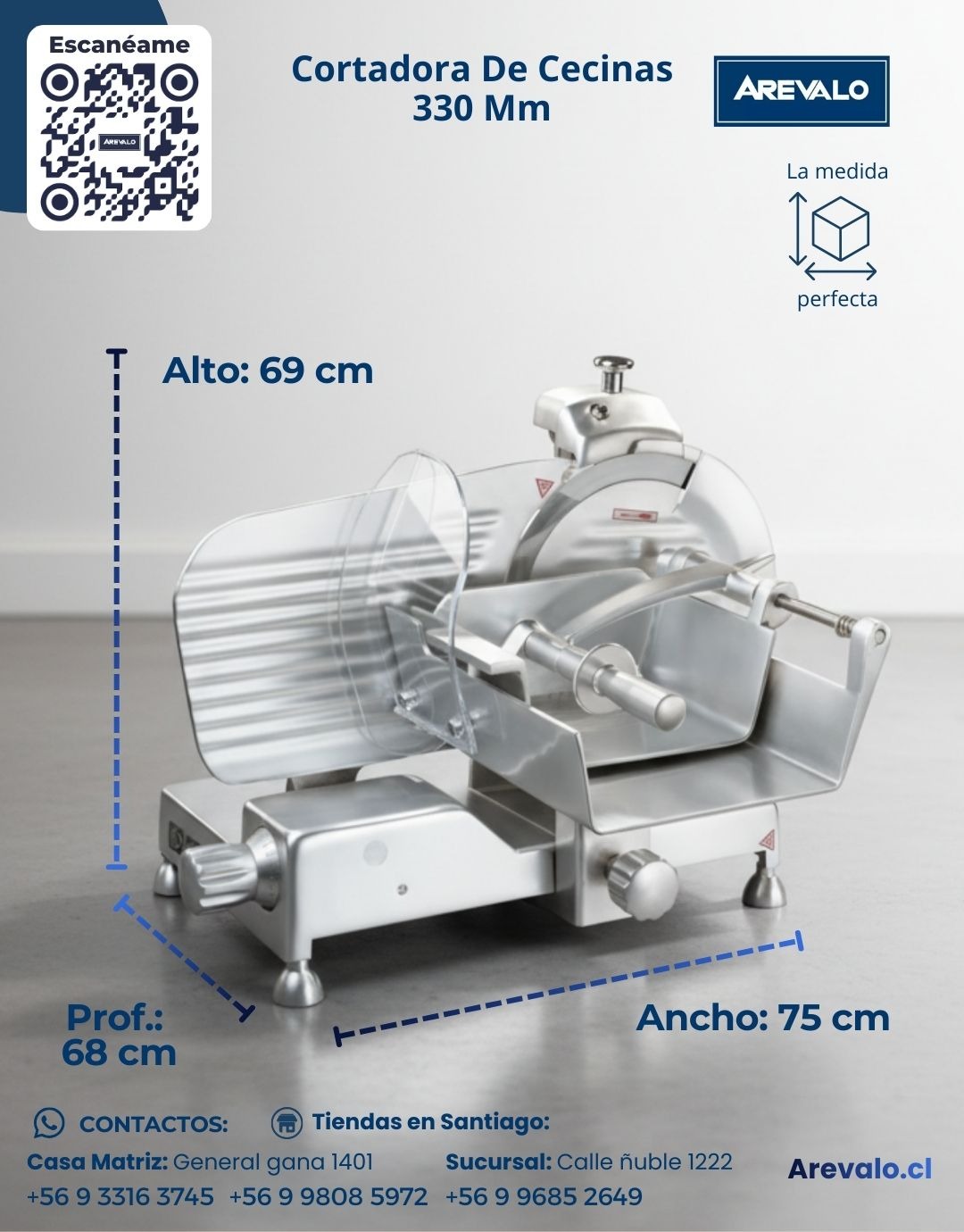 La Cortadora de Cecinas 330 mm Arevalo es una solución profesional para negocios que requieren mayor capacidad y rendimiento en el corte de alimentos. Su disco de 330 mm permite trabajar piezas más grandes de fiambres, quesos y embutidos, optimizando el tiempo de operación y aumentando la productividad.