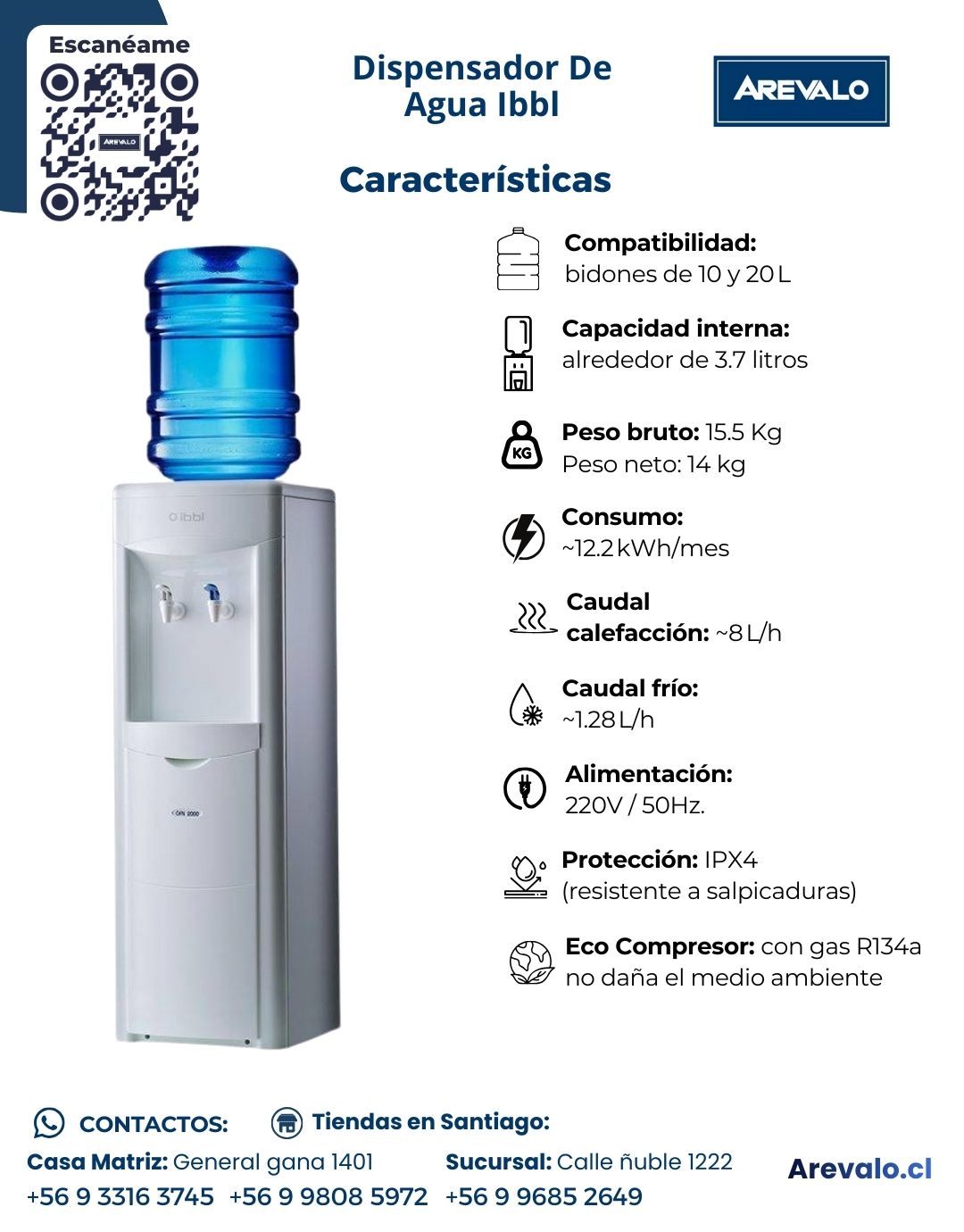 El Dispensador de Agua IBBL está diseñado para ofrecer un suministro constante y eficiente de agua fría y caliente en entornos de uso continuo. Su sistema interno permite un enfriamiento estable hasta 10 °C y una calefacción que alcanza 85 °C, ideal para bebidas calientes. Compatible con botellones de 10 y 20 litros, cuenta con un volumen interno optimizado y caldera integrada para un desempeño seguro. Su eficiencia energética, bajo consumo mensual y grado de protección IPX4 lo convierten en una solución confiable para oficinas, hogares, salas de espera y espacios comerciales que requieren calidad, seguridad y rendimiento.