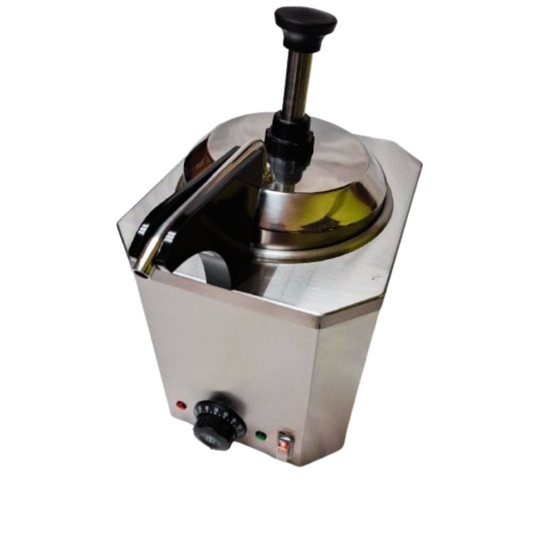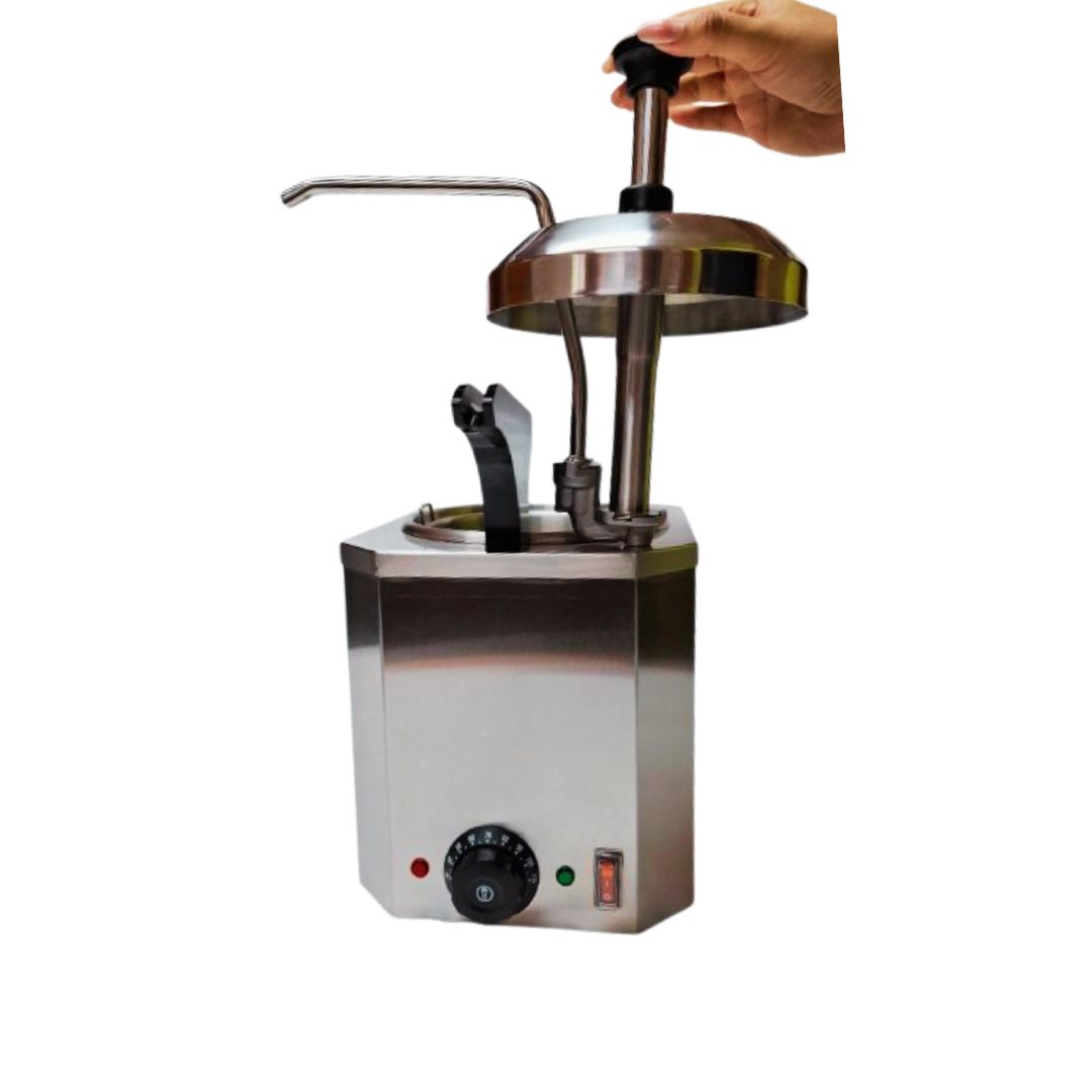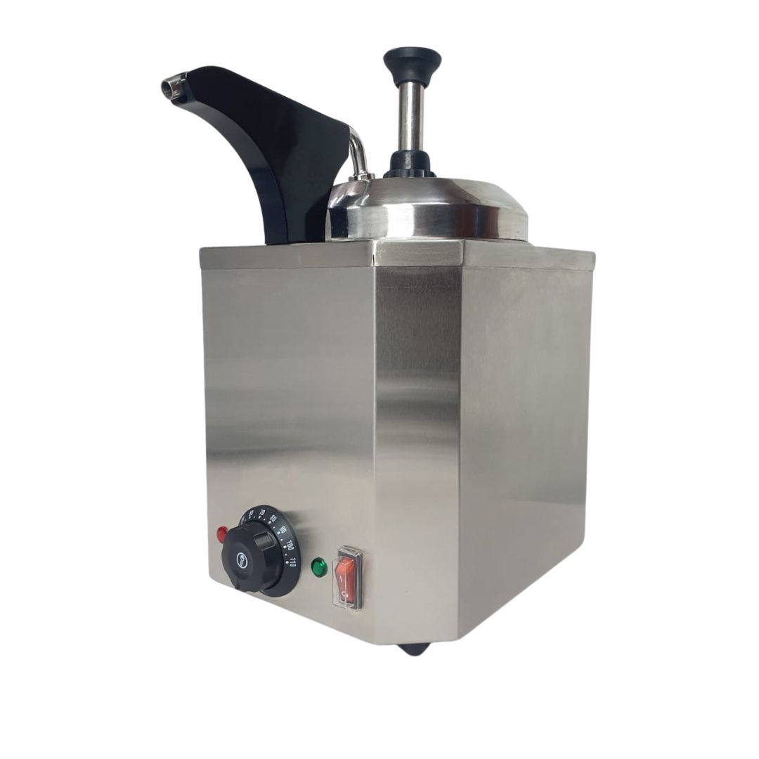 Dispensador de salsas para mantener el calor; extracción de nutella, chocolate, especial para catering, fabricada en acero inoxidable.