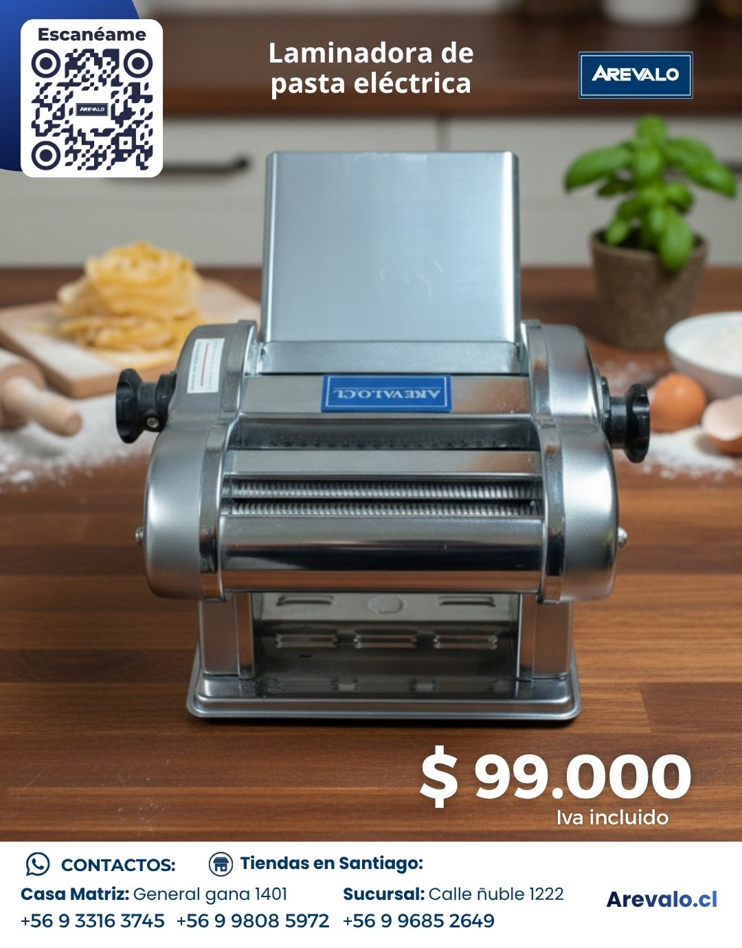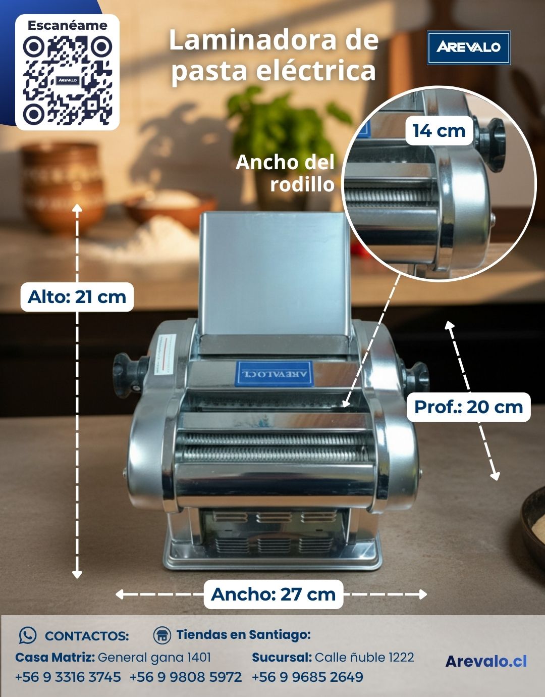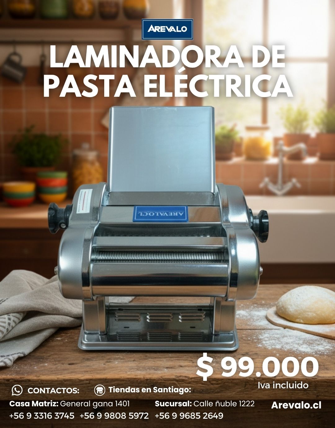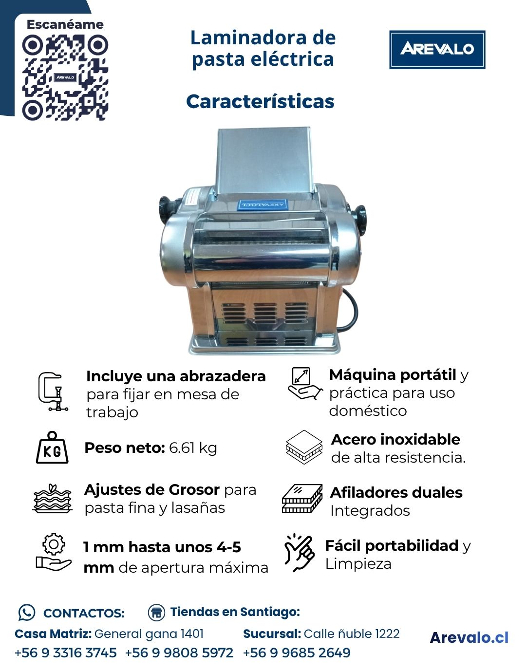 La Laminadora de Pasta Eléctrica Arevalo es ideal para estirar y cortar masa fresca de forma uniforme. Fabricada en acero inoxidable, permite preparar pasta artesanal de manera más práctica y cómoda, siendo una excelente opción para uso doméstico y pequeños negocios gastronómicos. La estructura y enfoque comercial siguen la línea de redacción de la ficha manual publicada por Arevalo.