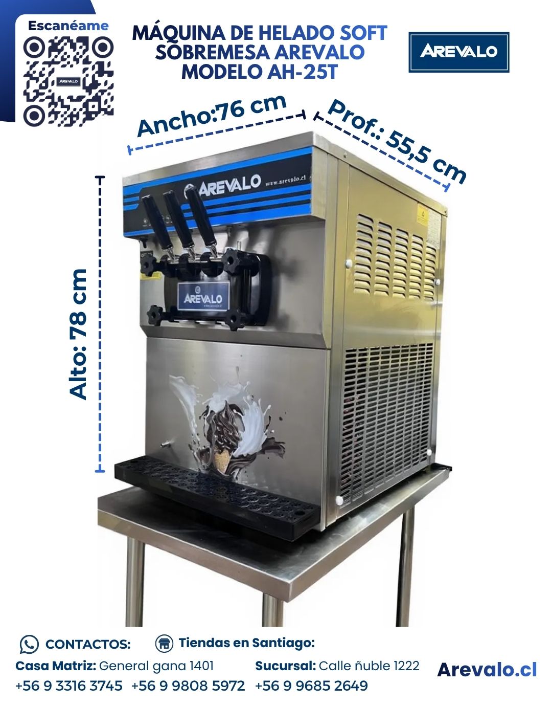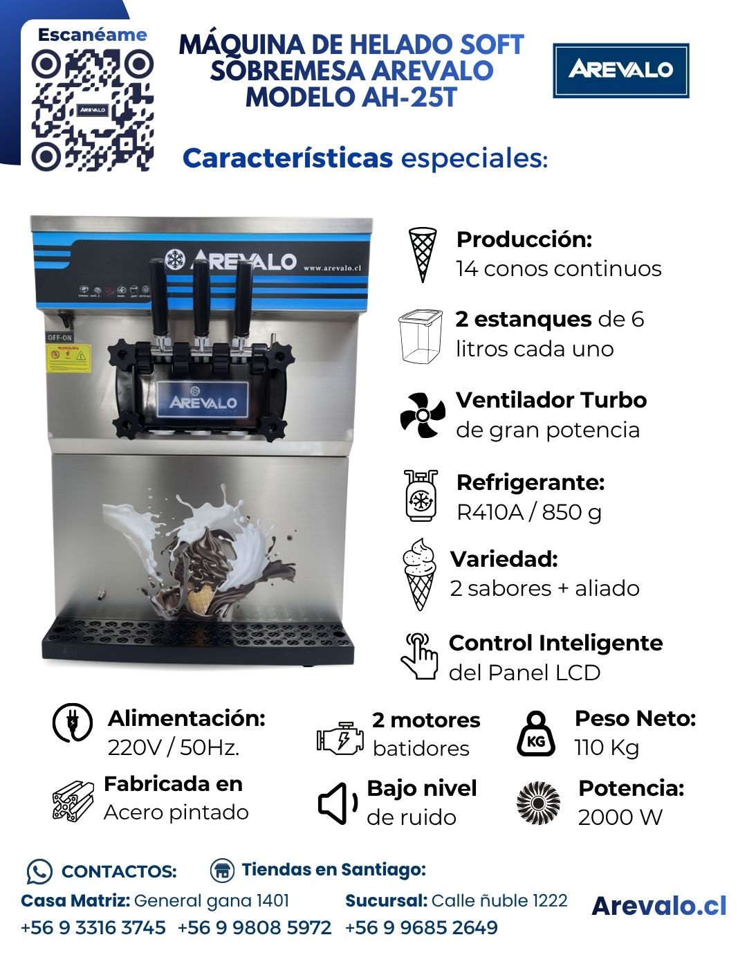 Convierte cada servicio en una experiencia deliciosa: la Máquina de Helado Soft Arevalo AH-25T combina tecnología, potencia y diseño para ofrecer helados perfectos con el mejor rendimiento energético.