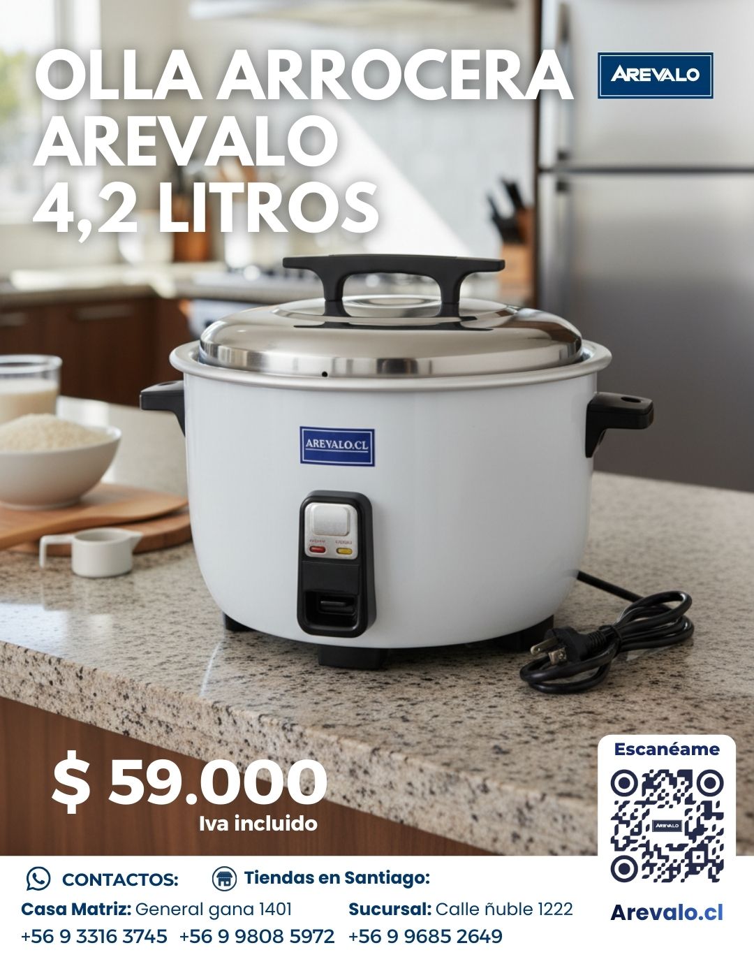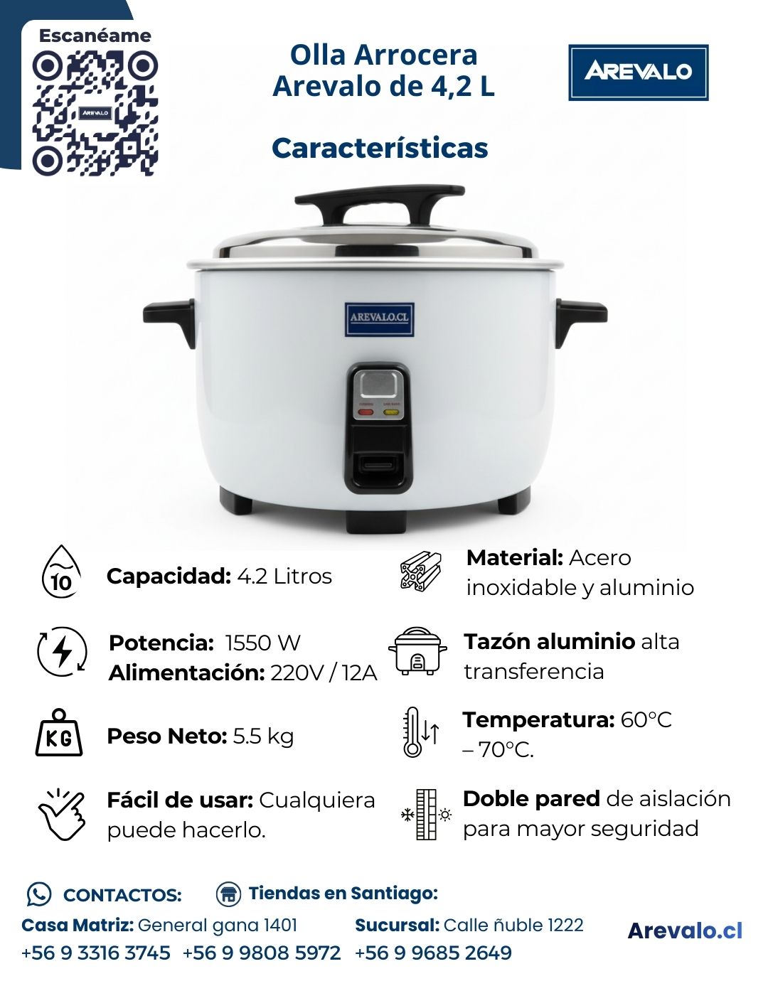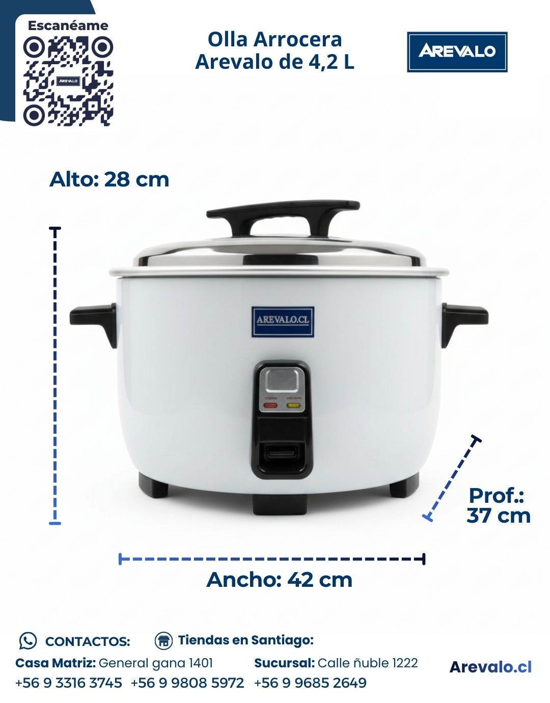 La Olla Arrocera Arevalo 4,2 Litros está pensada para quienes necesitan una solución confiable y eficiente para la preparación de arroz. su sistema