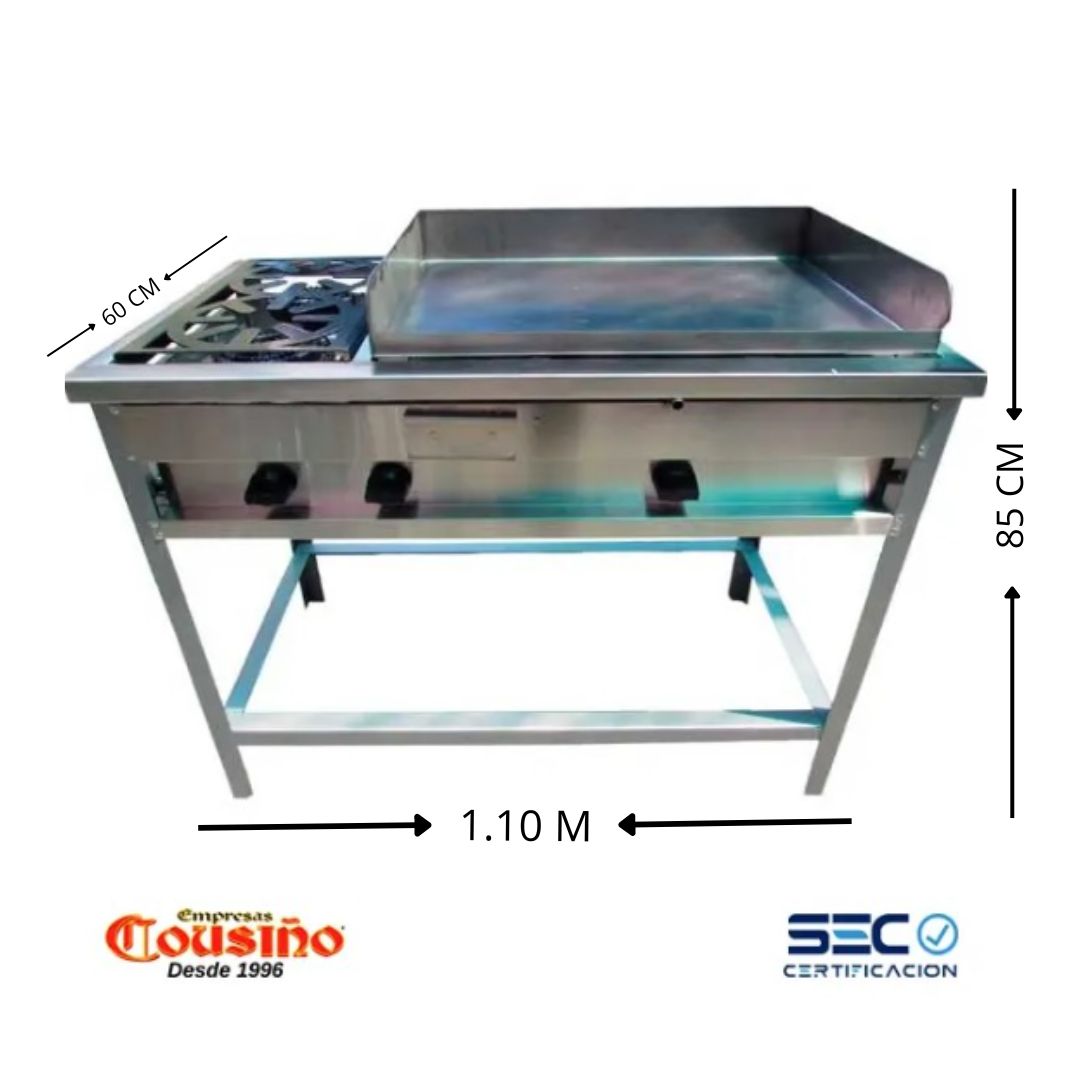 Plancha Churrasquera 50×70 Cm Con Anafe 2 Quemadores Cousiño Modelo Ch702Qc