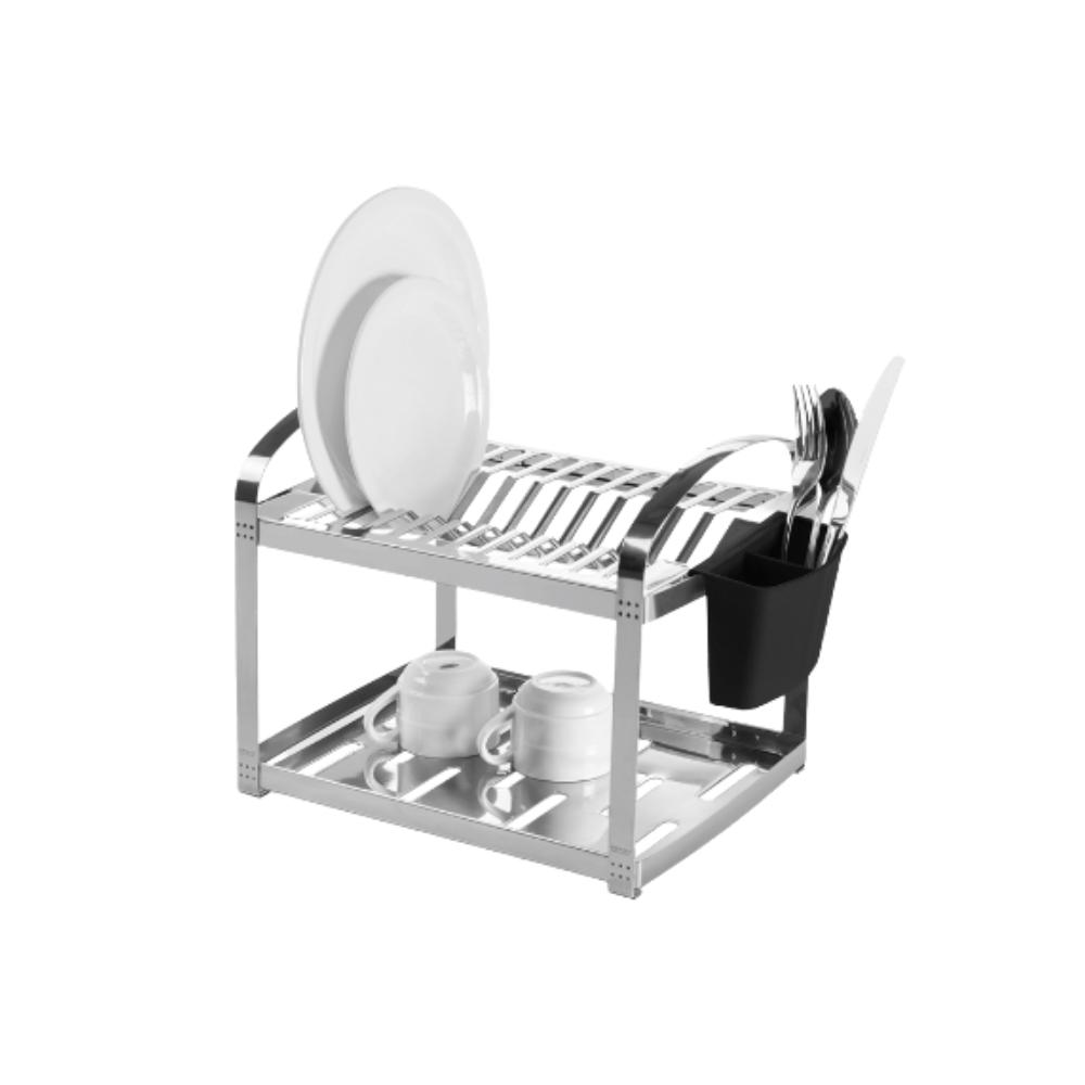 La solución perfecta para los que disponen de poco espacio y les gusta tenerlo todo organizado en el fregadero es el escurreplatos Brinox de dos pisos de acero inoxidable para 12 platos con portacubiertos Suprema Brinox negro. El conjunto escurridor de platos + escurridor de cubiertos mide 41,5 cm de largo/fondo por 27 cm de ancho y 28,5 cm de alto. Para facilitar el flujo de agua, no permitiendo la acumulación y permitiendo un secado rápido, el escurridor de platos de acero inoxidable Brinox tiene varios cortes alineados con su diseño. Fabricado con material de acero inoxidable totalmente pulido, tiene brillo y sofisticación, sin oxidar el producto durante el uso. Robusto y duradero, el escurridor viene con un segundo escurridor extraíble para cubiertos, fabricado en plástico de polipropileno negro. Ideal para uso en cocinas caseras, perfecto para familias grandes y pequeñas, ya que es compacto y funcional para el uso diario. Se puede usar para platos, cubiertos y luego utensilios, así como artículos más grandes como cacerolas y sartenes. Y tras su uso, nuestro consejo es secar el escurridor para que mantenga siempre su brillo. Lávelo con una esponja suave, agua corriente, jabón o detergente neutro.