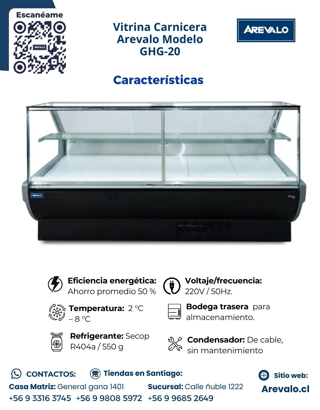 La Vitrina Carnicera Arevalo GHG-20 está diseñada para quienes buscan calidad profesional y presentación impecable. Su sistema de frío forzado mantiene las carnes frescas y seguras entre 2 °C y 8 °C, mientras la iluminación interior realza el color natural de los productos. Fabricada con materiales de alta durabilidad, integra una amplia bodega inferior para almacenamiento adicional y puertas correderas que facilitan la manipulación. Gracias a su condensador sin mantenimiento y gas ecológico R404a, reduce el consumo energético y los costos operativos, ofreciendo eficiencia y estética en un solo equipo.