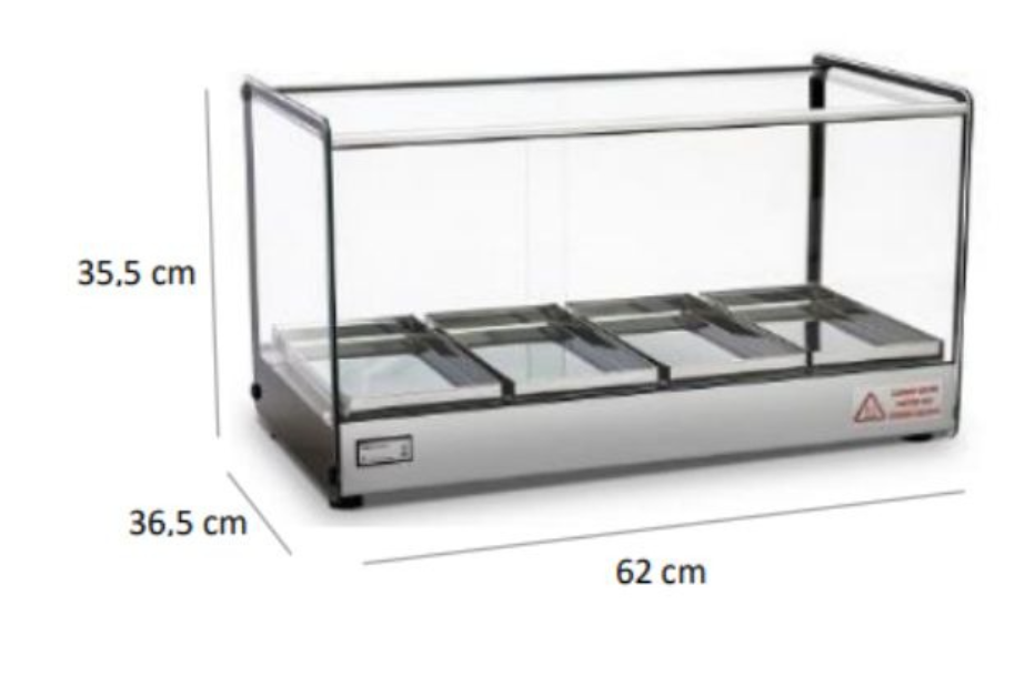 Vitrina De Calor Vidrio Recto De 4 Bandejas