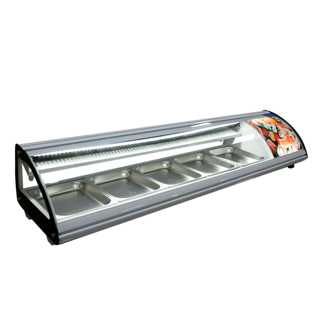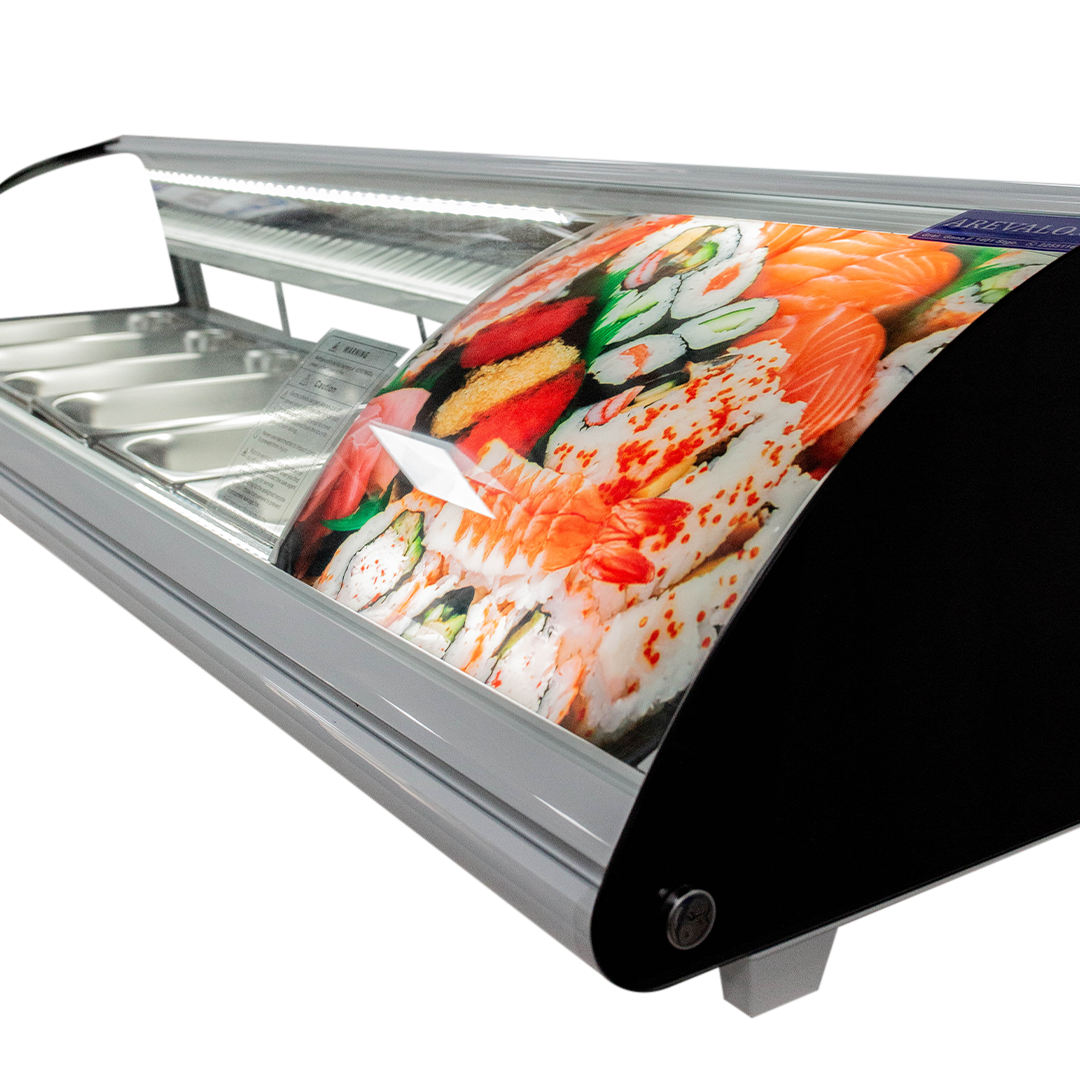 - Presentación impecable: La combinación de su diseño blanco moderno y la iluminación LED interna hacen que los alimentos se vean frescos y apetitosos, ideal para locales que desean destacar su sushi y otros productos.