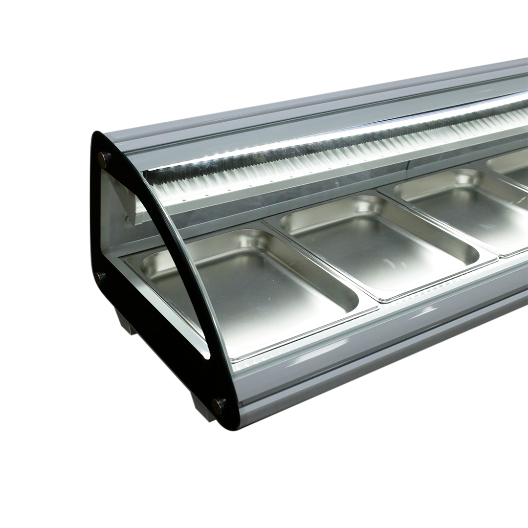 - Iluminación LED interna: Luz superior LED que resalta la presentación de los alimentos, ofreciendo una visualización clara y atractiva para los clientes.