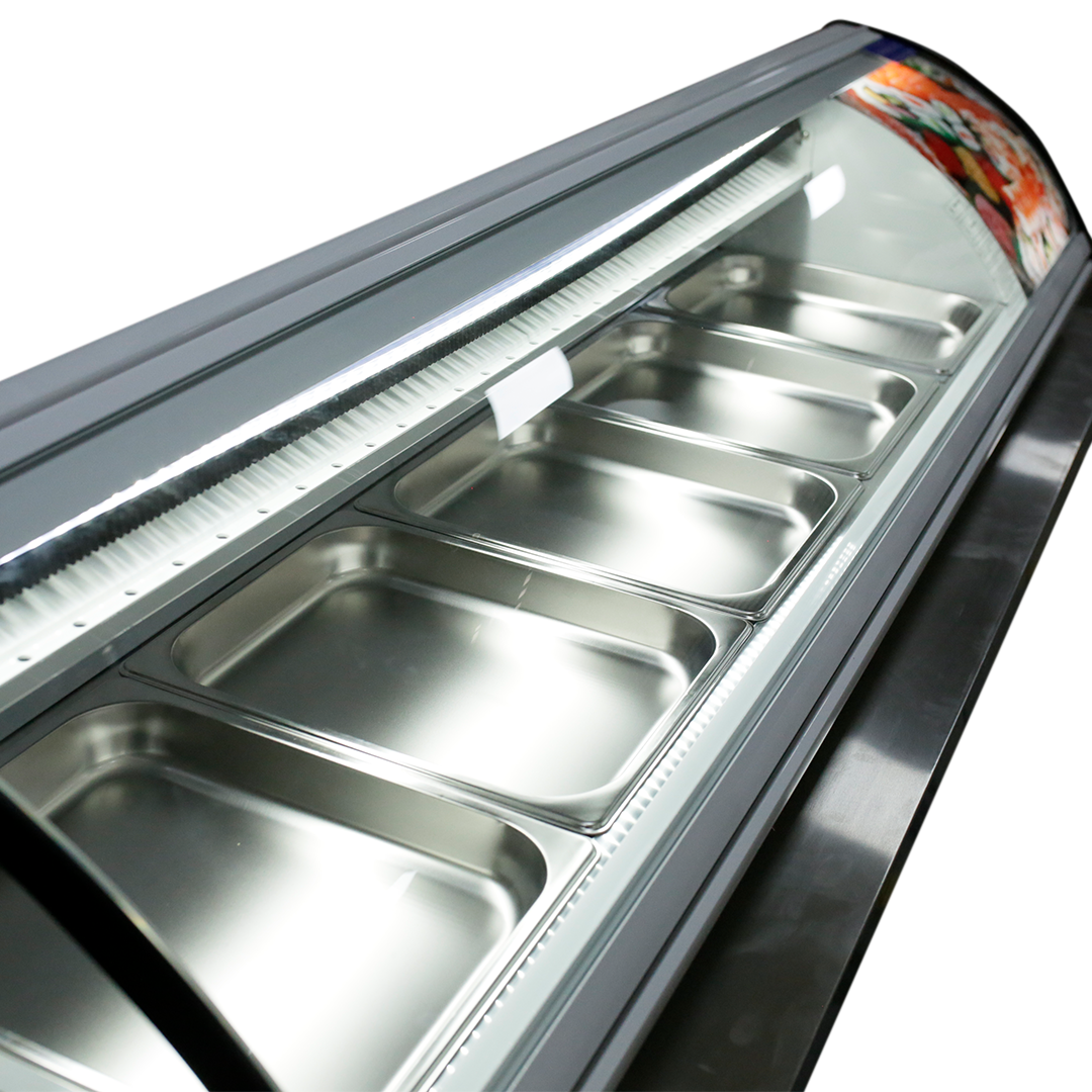 - Evaporador superior e inferior: Garantiza una distribución homogénea del frío, manteniendo el sushi y otros alimentos frescos en todo momento.